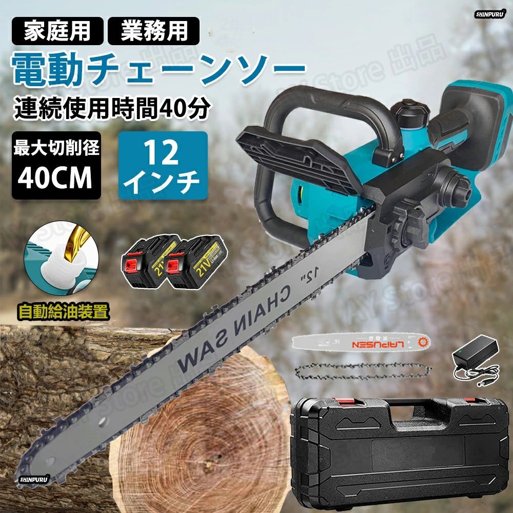 - 1円 チェーンソー 充電式 ハンディ 電動チェンソー 12インチ 21Vバッテリー*2 18Vマキタバッテリー対応 自動給油 安全ロック 強力 bhw0180