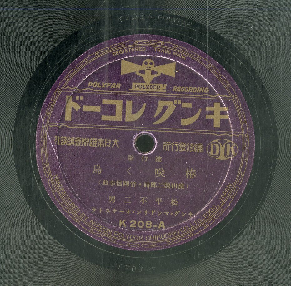 K00033794/SP/松平不二男(松平晃) / 渡瀬春枝(渡辺光子)「椿咲く島 / 君はほほえむ (K-208)」