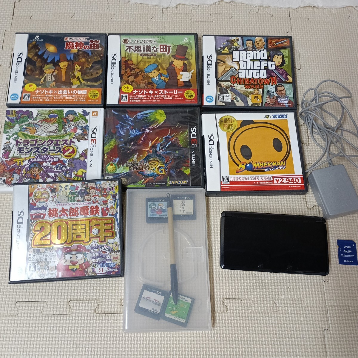 > ▲ニンテンドー3DS コスモブラックアダプター付き WAP-002 SDカード4GBあり ソフト11本セット