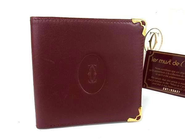 > 1円 ■美品■ Cartier カルティエ マストライン レザー 二つ折り 財布 ウォレット 札入れ メンズ ボルドー系 FP8083