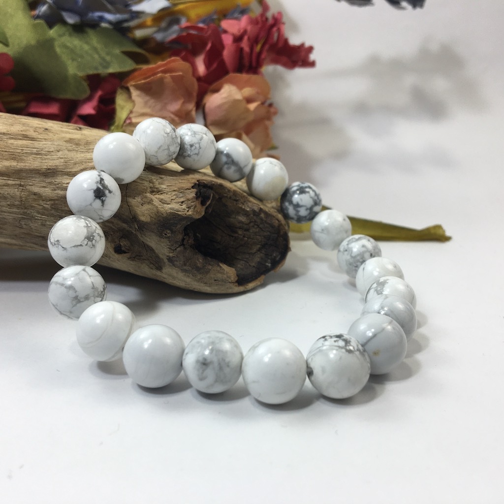 > ハウライト パワーストーン ブレスレット 10mm 天然石ブレス シンプル 開運 浄化 数珠ブレス メンズ・レディース 男性 ☆