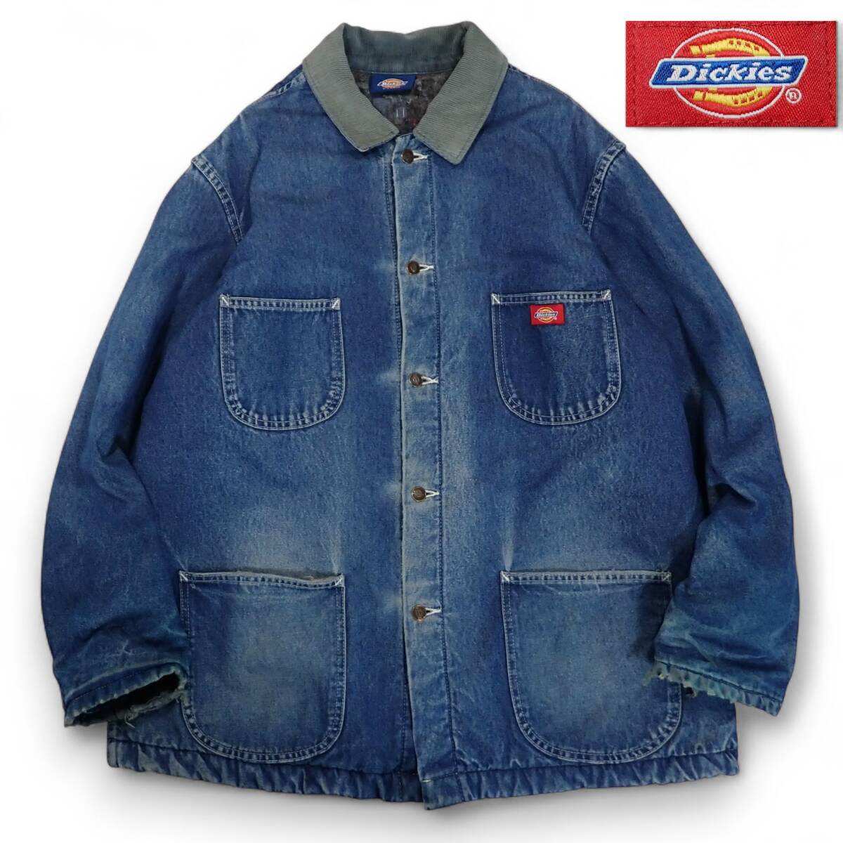 > Dickies デニム カバーオールジャケット XL●ブランケット裏地 色落ち雰囲気◎90sビンテージ コーデュロイ襟●洗濯プレス済●古着7160