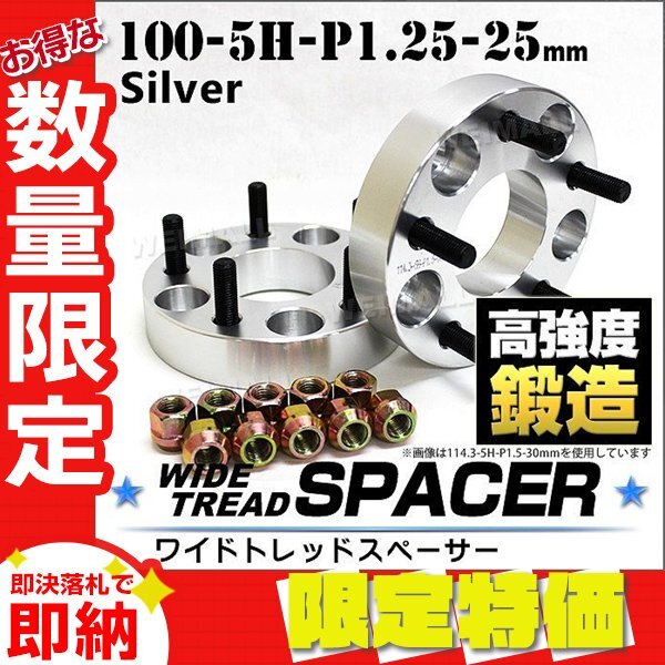 - 【限定セール】Durax正規品 ワイドトレッドスペーサー 25mm 100-5H-P1.25 ナット付 銀 5C 5穴 日産 スズキ スバル 2枚セット ブランド