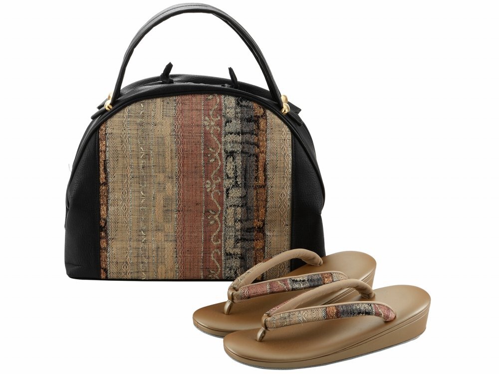 - ◆日本製◆正絹 お洒落用 草履バッグセット 本皮底 帯地 フリーサイズ bs-376-20 【カジュアル 紬 小紋 和装 着物 和服】