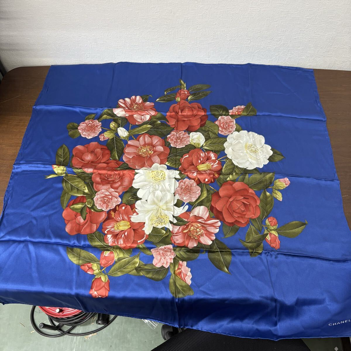 - 寺222 CHANEL シャネル シルクツイルスカーフ 花柄 大判 シルクスカーフ シルク スカーフ ブルー