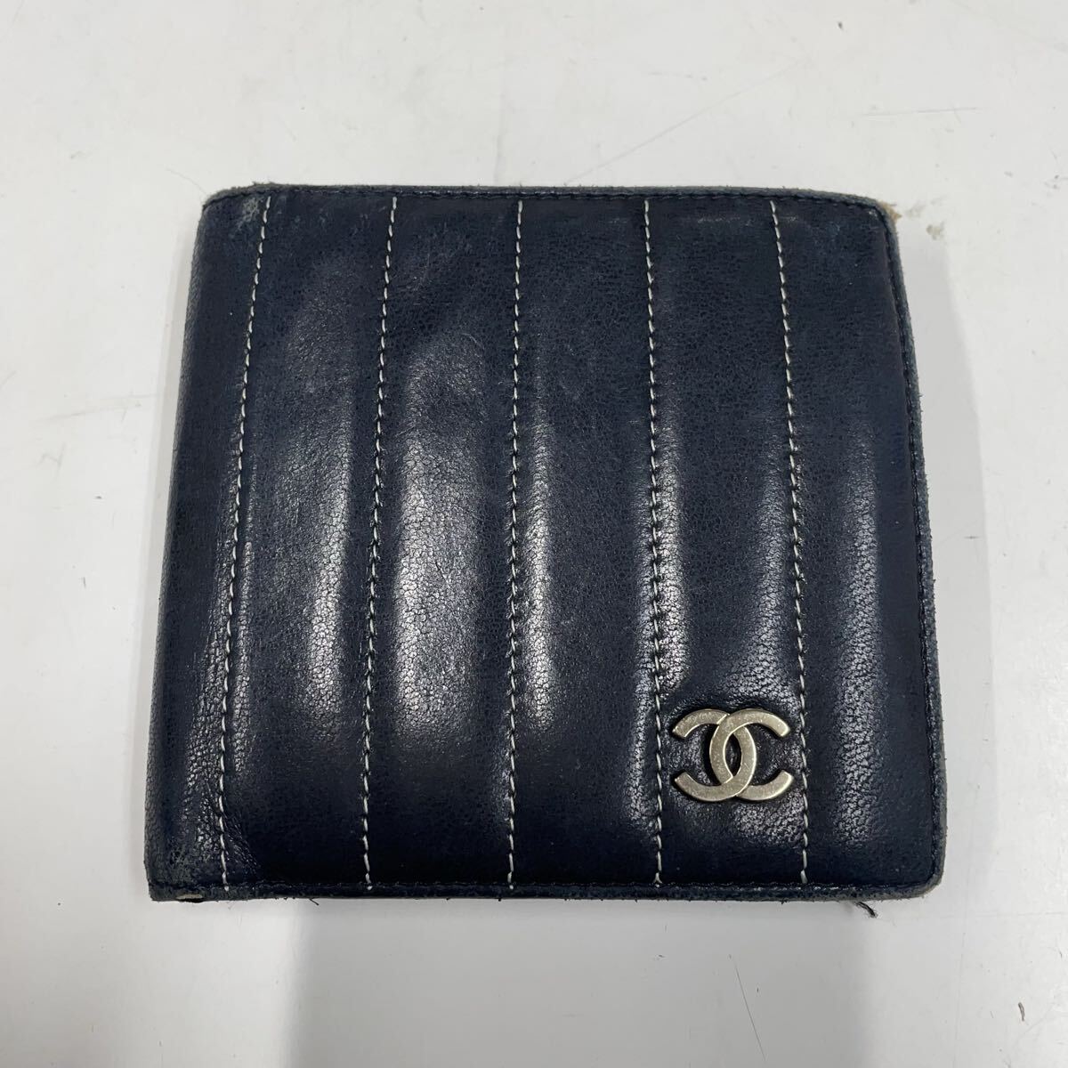 - 寺222 CHANEL シャネル マドモアゼルライン ココマーク 二つ折り財布 レザー ブラック 10475011