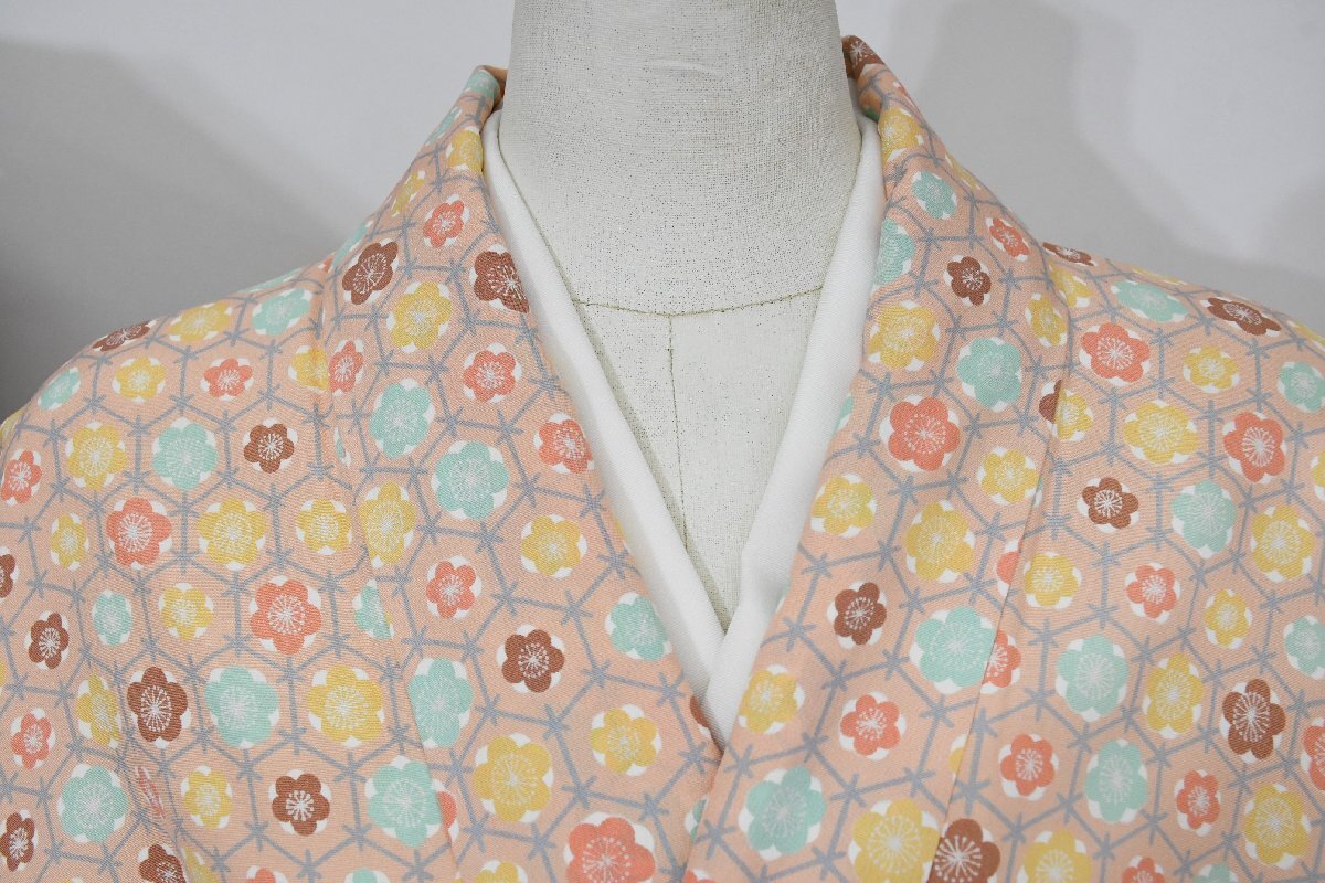 > 小紋 着物 袷 花 籠目 身丈154cm 裄丈65cm ★ kb-7380 桜庭呉服店