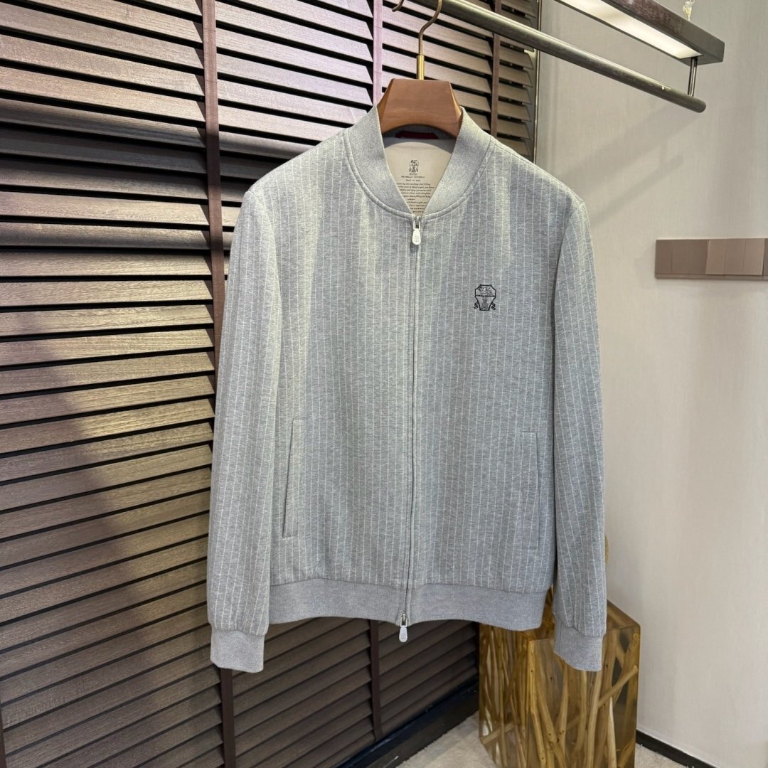 > グレーXXL★送料無料★ブルネロクチネリ★メンズピンストライプジャケット,ビジネスカジュアルスタンドカラー,ポリエステルウールコットン