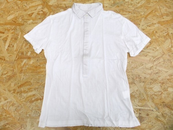 > nano universe ナノユニバース レディース 日本製 ストライプショートカラー 薄手 半袖ポロシャツ 白