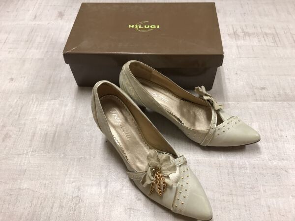 - Trespecia トレスペシア ゴールド スタッズ フラワー装飾 エレガント レトロ モード ハイヒール 靴 レディース 箱付き 23.5cm 生成り