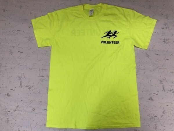 - VOLUNTEER ボランティア ギルダン製 GILDAN 蛍光 ランニング 半袖Tシャツ カットソー メンズ バックプリント有 M 黄色