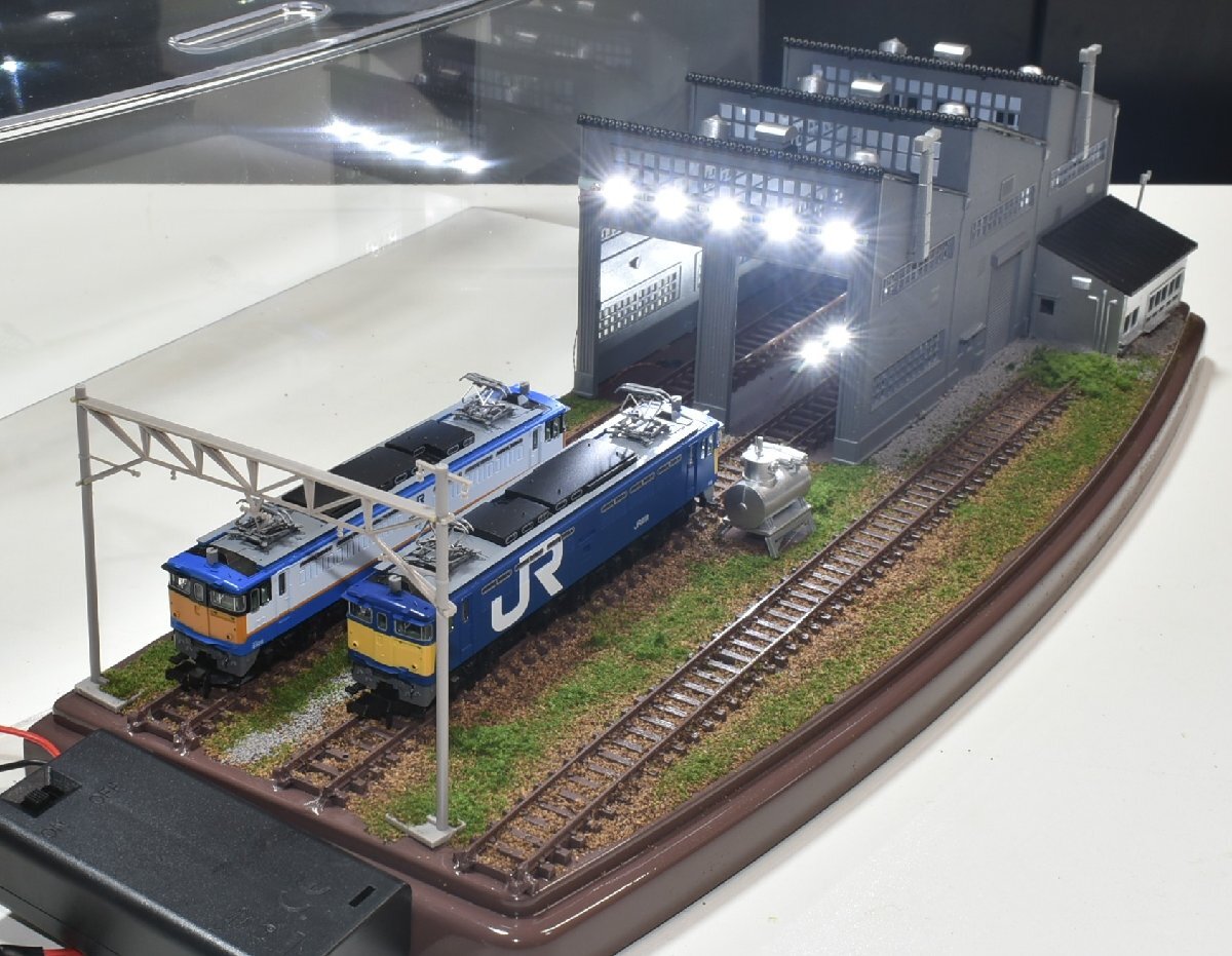 - 【SAZAN】鉄道ジオラマ展示台ケース付き 車輛修理工場 ヤード照明付き3線路(他の商品と同梱不可)※33x12cm★1