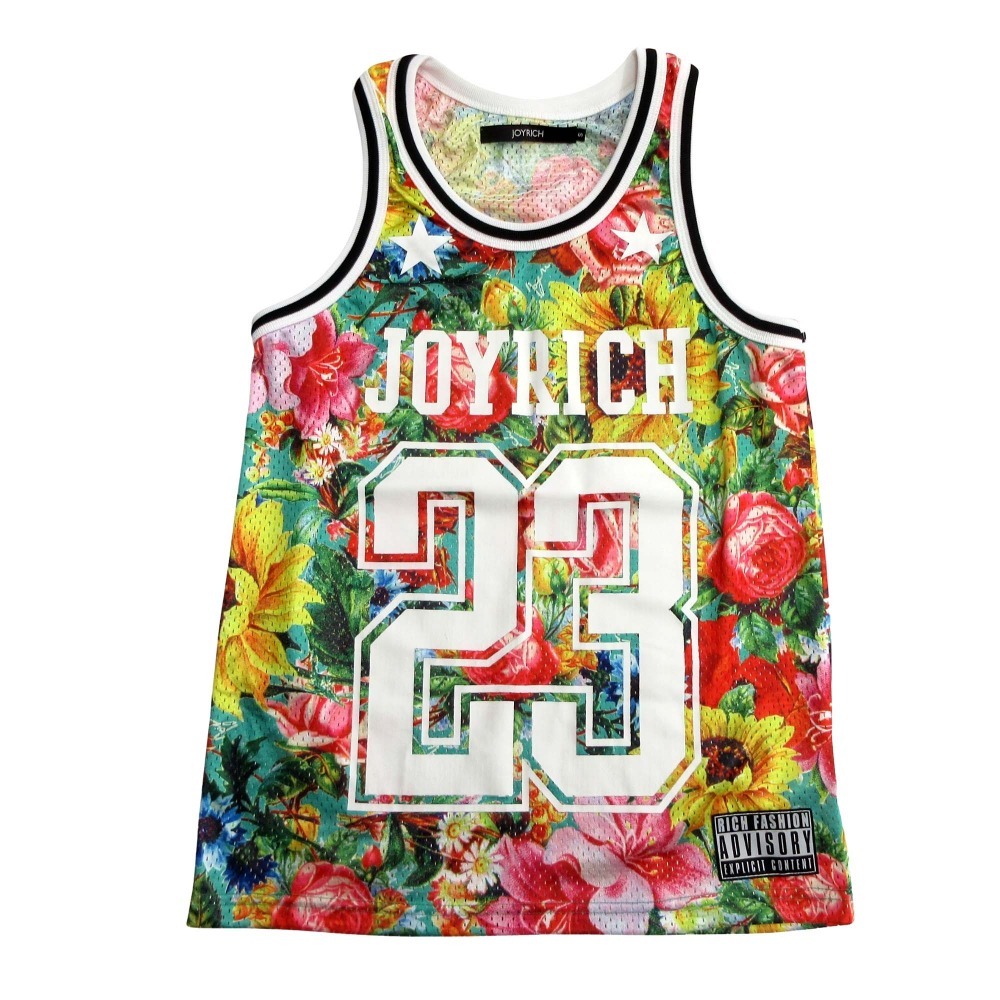 > 美品 JOYRICH ジョイリッチ フローラル柄 花柄 メッシュ タンクトップ プリント カットソー ノースリーブ ナンバリング ロゴ S