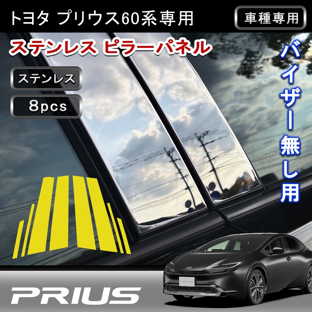 - 【プリウス60系】ピラーカバー 鏡面仕上げ 8Pセット バイザーなし車両専用