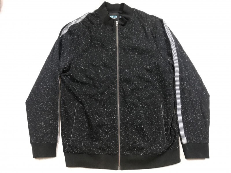 - HUNTCITY Yuppie Sense 共産ハイストリート ジップアップ サイドライン付き ごま塩 ネップ スウェット トラック ジャケット メンズ XL 黒