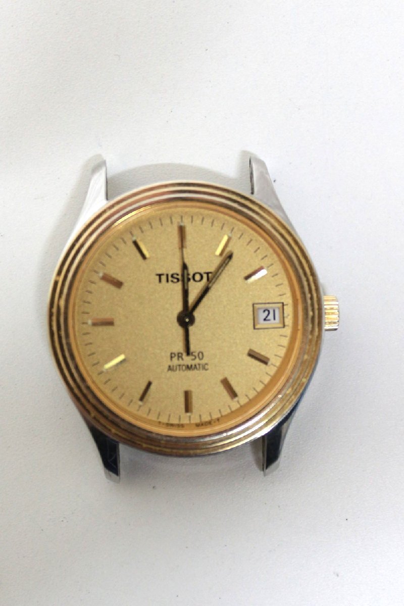 - 【6PW232】1円スタート TISSOT ティソ PR50 腕時計 稼動品 J194 294K 自動巻き デイト ゴールド文字盤 裏スケルトン フェイスのみ 現状品