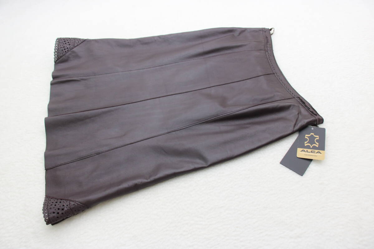 - 6132 新品タグ付き 高級羊革レザースカート ダークワイン9号