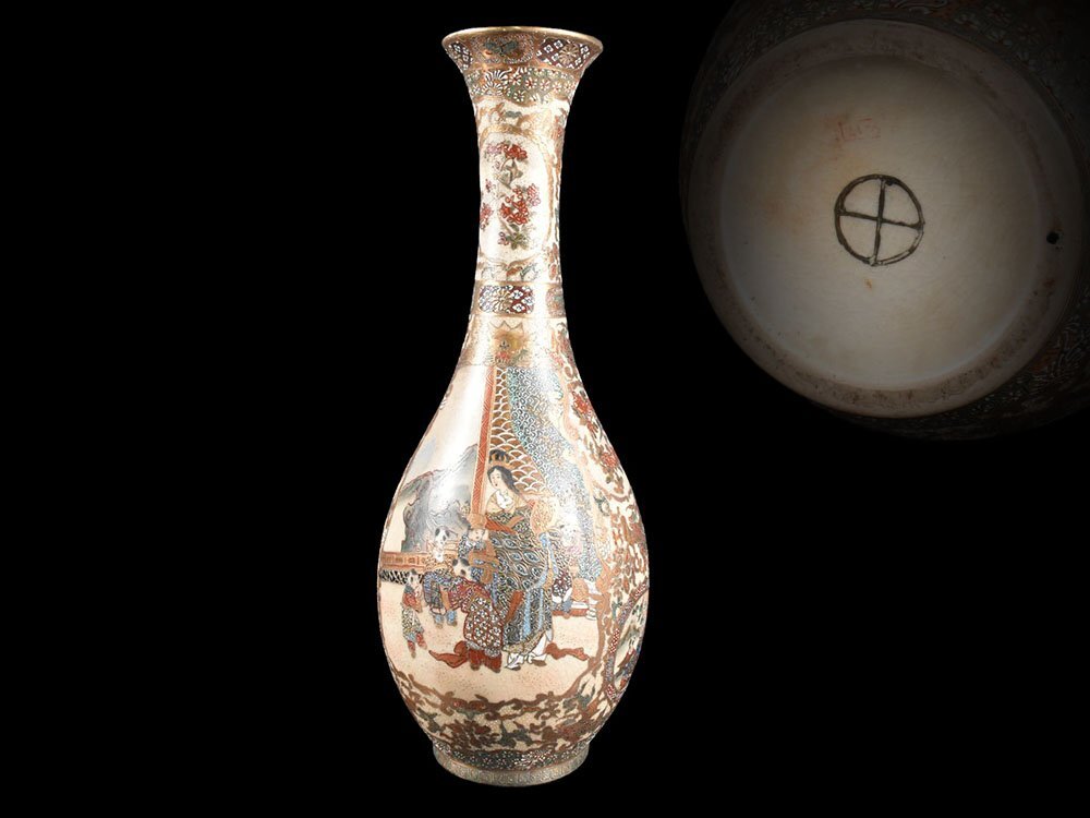 > 【雲】某名家買取品 豪華絢爛 薩摩 金襴手人物風景細密絵付大花瓶 飾壺 高さ41.3cm 古美術品(花器花入)CJ1639 DTvjsvbds