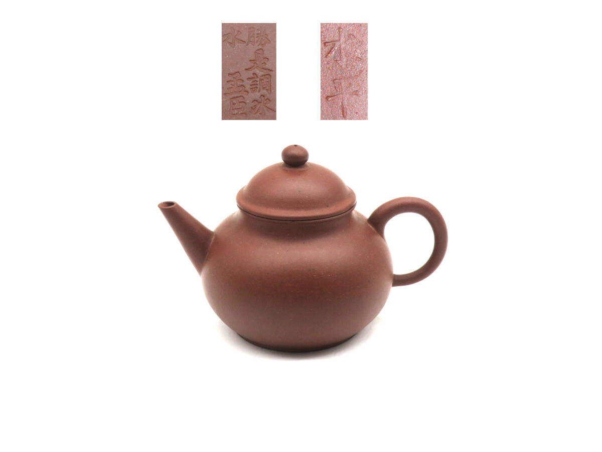 > K8875 唐物 朱泥 勝是調冰水 孟臣 底銘 水平 蓋裏銘 紫砂 急須 在銘 刻印 水注 古美術 陶磁工芸 茶道具 茶器 時代物 唐物 鉄瓶