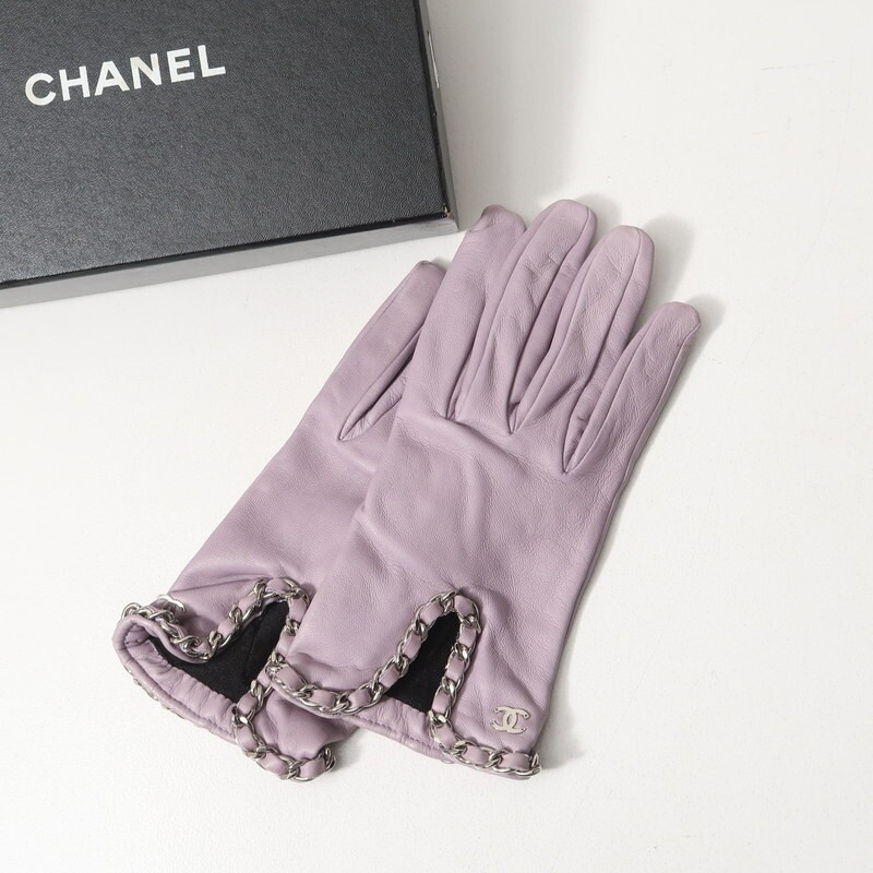 - MH9993▼フランス製*シャネル CHANEL*本革/羊革 CC/ココマーク チェーン装飾 レザーグローブ 手袋 サイズ7 1/2 パープル系 シルクライナー