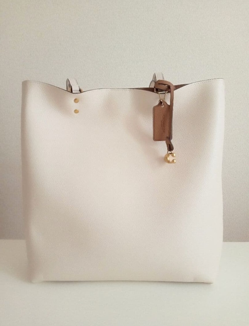 > 【定価4.8万】COACH コーチ pbbl plaza tot ペブル プラザ トート バッグ ホワイト 通勤