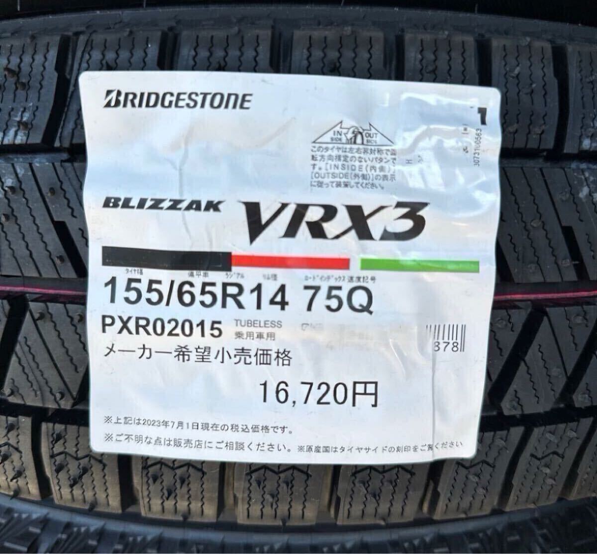 > 【2025年製】4本/本州法人宛29200円~◆VRX3 155/65R14 75Q 日本製 ブリヂストン ブリザック スタッドレス ブリジストン軽自動車