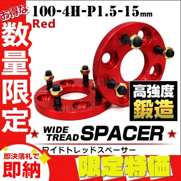 - 【限定セール】Durax正規品 ワイドトレッドスペーサー 100-4H-P1.5-15mm ナット付 赤 8A 4穴 ワイトレ トヨタ 三菱 ホンダ マツダ ダイ