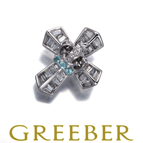 - 笠原真寿美 ペンダントトップ パライバトルマリン ダイヤ ダイヤモンド クラウン クロス K18WG BLJ