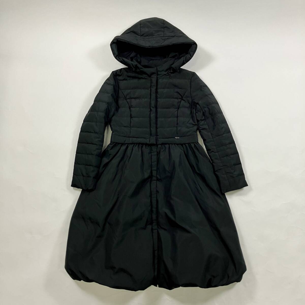 > ☆ Rene ルネ ダウンジャケット 2way ロング ショート コート Aライン ロゴ ダウン90% ブラック サイズ36 レディース 0.8kg