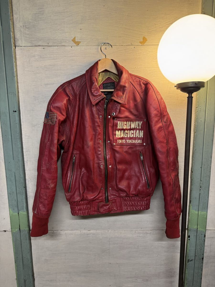 - ビンテージ YELLOW CORN レザージャケット サイズM 牛革 イエローコーン レーシング ブルゾン ライダース レッド 赤 ハーレー 本革