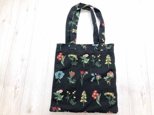> シーイン SHEIN ガーリー 通勤 通学 古着小物 ビンテージフラワー ボタニカル刺繍 トートバッグ カバン 内ポケット付き 黒