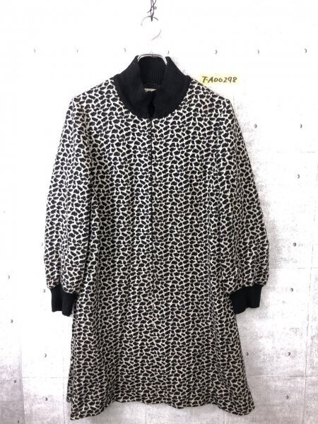 - Bella Colline レディース ヒョウ柄 フロントジップ ニットワンピース 黒オフホワイト