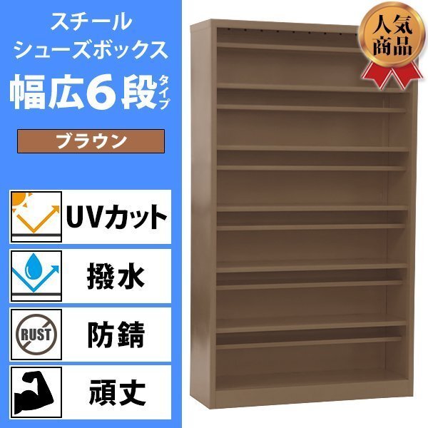 - 送料無料 ロッカー おしゃれ スチール シューズボックス 24人用 ブラウン 幅広6段タイプ オープンタイプ 棚板付き 扉なし 1列6段 UVカット