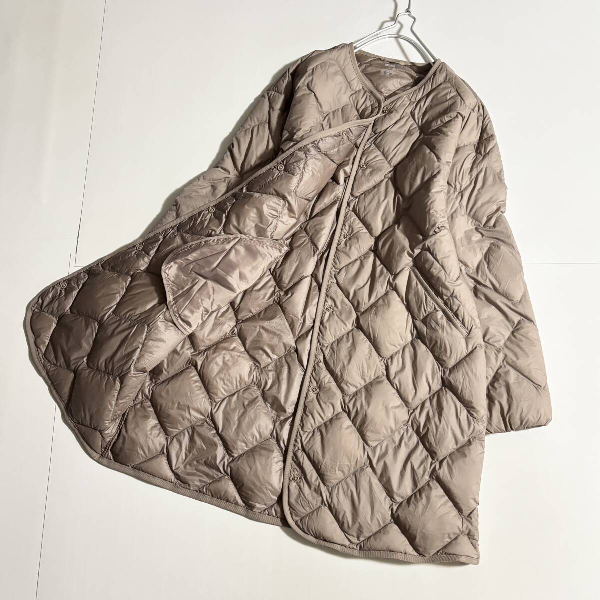 > UNIQLO ユニクロ サイズM // ダイヤ柄刺しゅう ノーカラー ココアベージュ ウルトラライト ダウンコート ⑥
