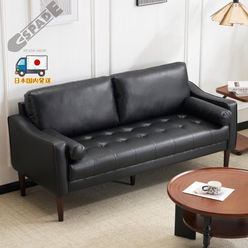 - 【国内発送】 ソファー 3人掛け カウチソファ リビングソファ 肘掛け付き 枕付き おしゃれ PUレザータイプ お掃除ロボット通れる取り外
