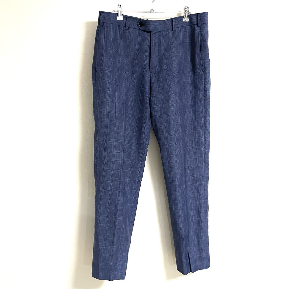 - 【ブルックスブラザーズ/リージェントフィット】高級上質ヘンプ×ウールテーパードパンツ/チェック柄/ブルー/W34×L34/衝撃プライス!NF32