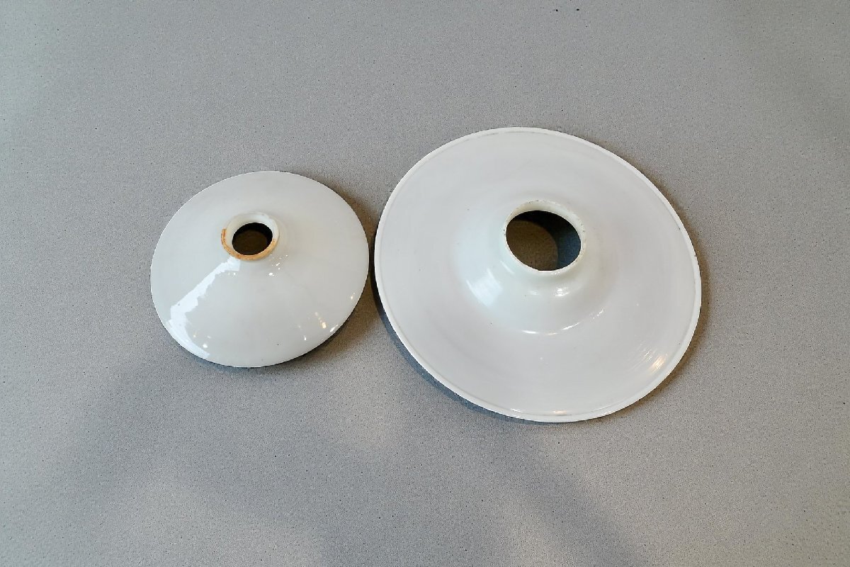 - ○平たい円盤型 白ガラス傘 2点セット 電傘 シェード ランプ レトロ 和モダン 古民家 ヴィンテージ 古道具のgplus広島 2511i