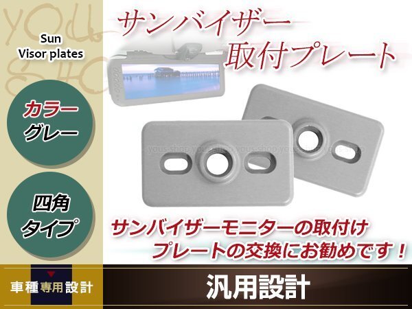> サンバイザー モニター 取付けプレート 2個セット グレー 四角 長方形 プレートタイプ 約62㎜×36㎜ プラスチック取付具 金具