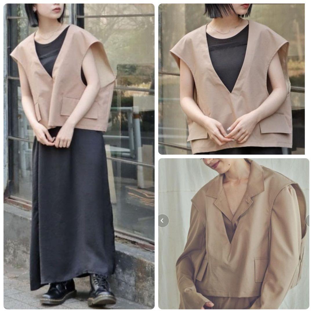 - MIOSMOKEY ミオズモーキー オーバーサイズジレ ボンディング素材 ベスト ノーカラー フロントポケット レイヤード アウター カジュアル