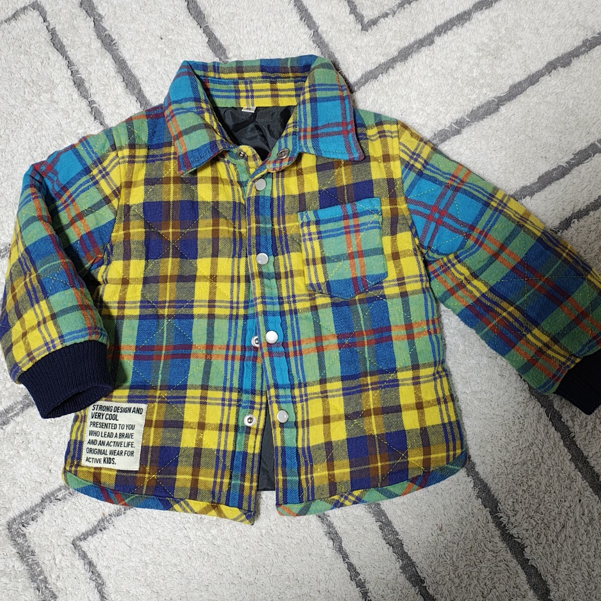 - 子ども用 中綿ジャンパー キルティングジャケット ネル チェック アウター 95 長袖シャツ
