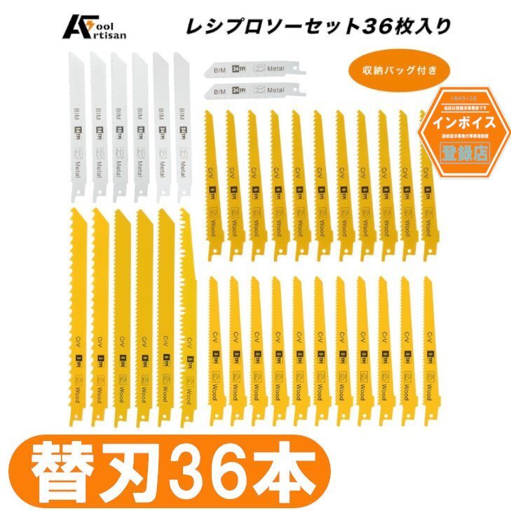 - 替刃セット 36枚入り アルチザンツール レシプロソー レシプロソーブレード 鉄工・木工用 収納バック付き ArtisanTool
