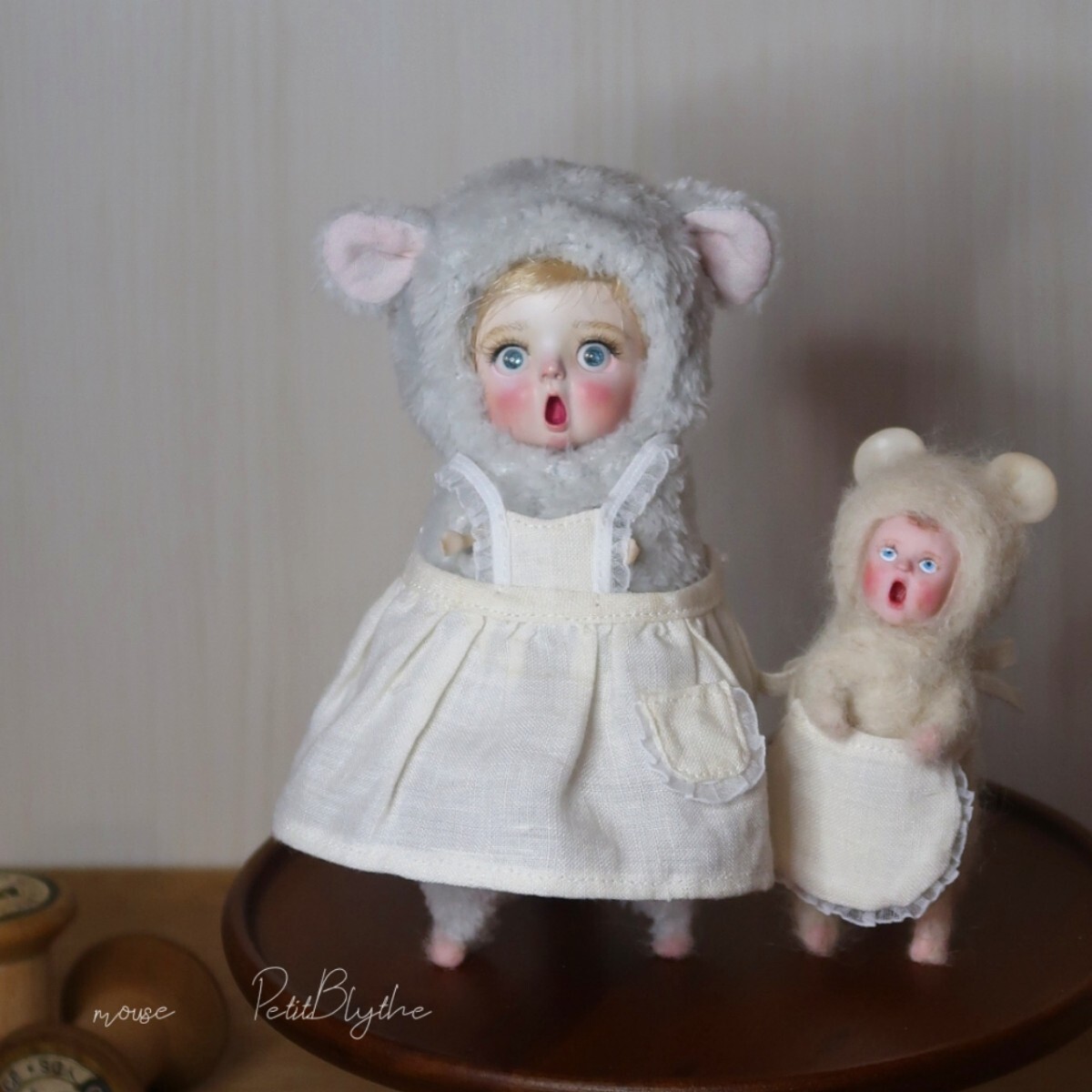 > CustomPetitBlytheと着ぐるみとねずみの人形のセット カスタムプチブライス PetitBlythe outfit