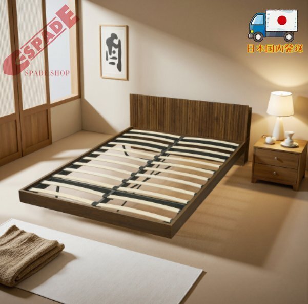 - 【国内発送】ベッド シングル 収納付き コンセント付き USBポート付き 和風 おしゃれ ベッドフレーム 頑丈 シンプル すのこ耐荷重Sシングル