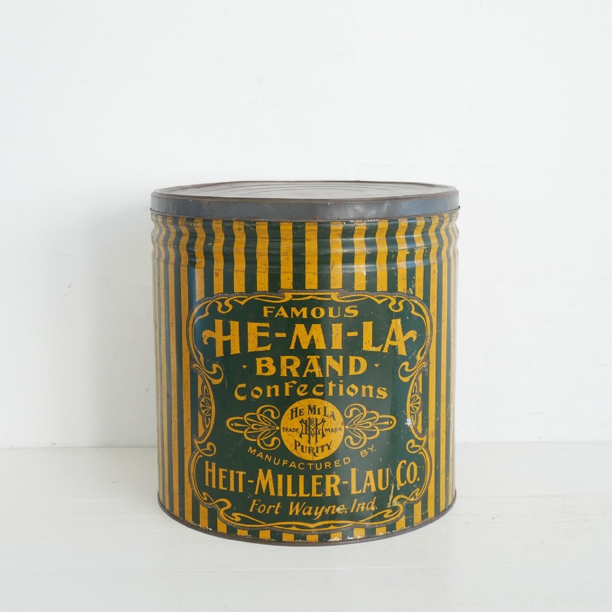 - 希少!1920s HE-MI-LA アンティーク ブリキ缶 / アメリカ 菓子の缶詰 ヴィンテージ ディスプレイ小物 #610-40-320-133