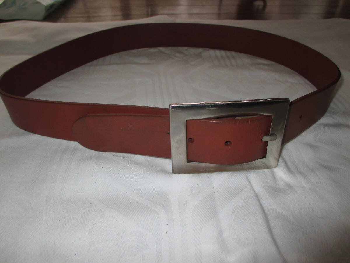 - 本革 ベルト レディース 合皮 茶色 ブラウン バックル シルバー 82cm~92cm 幅約3,3cm 女性 used レザー