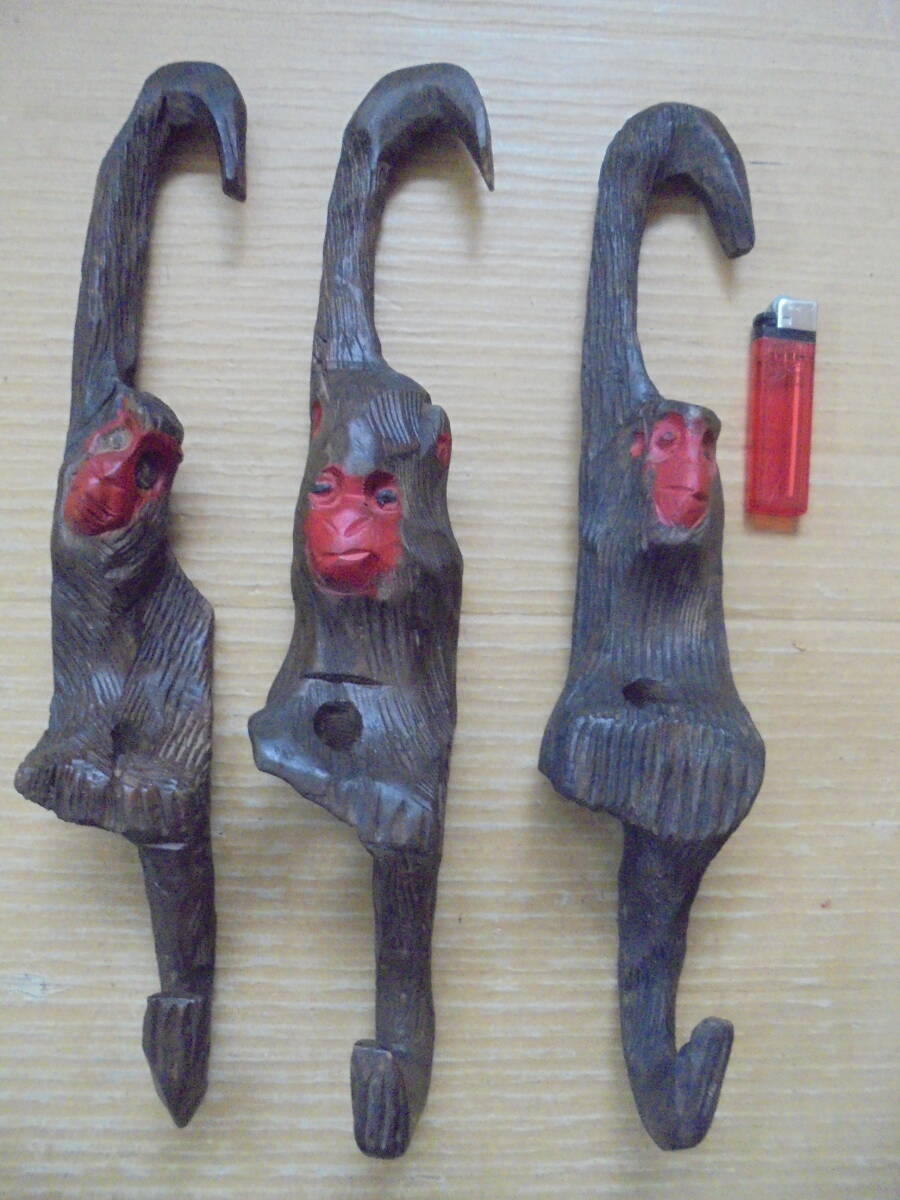 - サル吊り具 3本 縁起物 レトロ 8287 木製 竹製品 各種道具等 京都雲屋