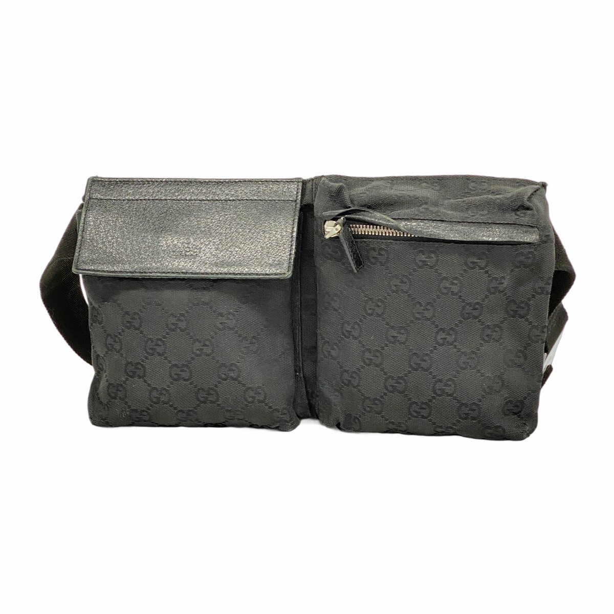 - 【5me5964】グッチ ウエストバッグ GGキャンバス 28566 キャンバス ブラック シルバー金具【中古】メンズ レディース ユニセックス