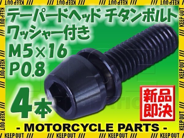 > メール便OK!M5×16 P0.8 チタンボルト 4本セット 5mm 16mm ピッチ0.8 ワッシャー付き ブラック テーパー ボルト ステム バイク 車 自転車