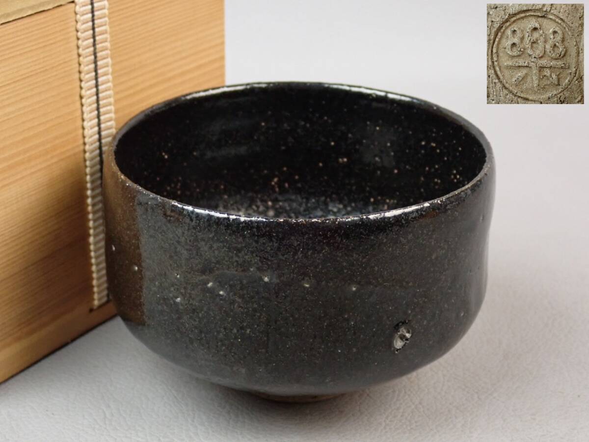 - 【骨董・茶道具】★古い 楽焼 在印★★黒楽茶碗 gq099ub