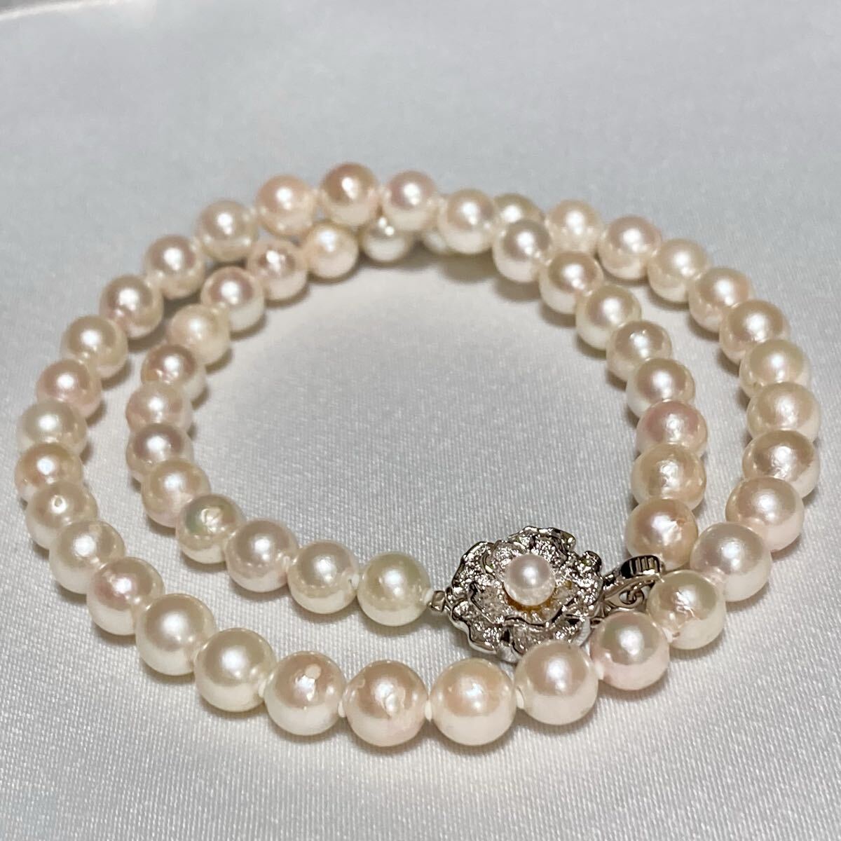 - あこや真珠 ネックレス7.0-7.5mm 43cm 33g 本真珠 パール アコヤ ラウンド pearl SILVER シルバー刻印 SV金具 Pearl necklace【790】